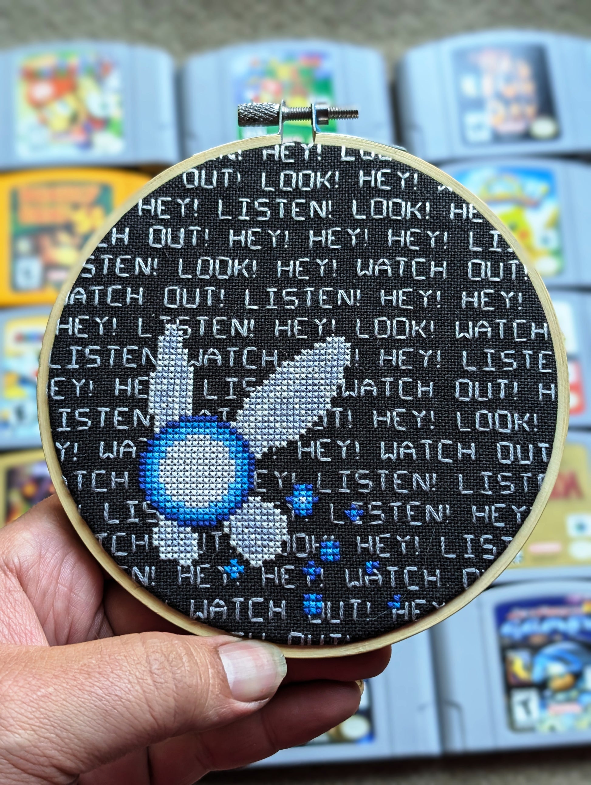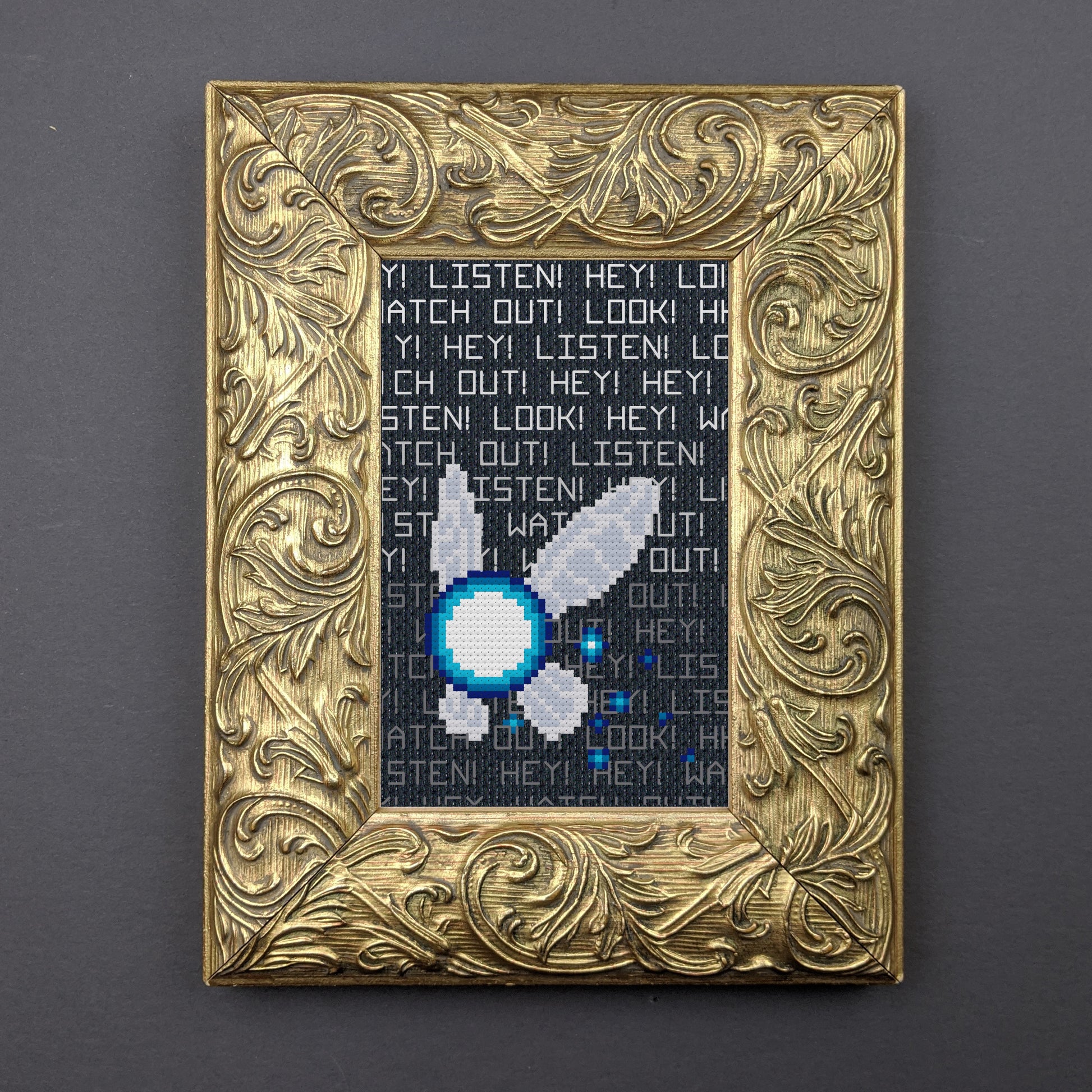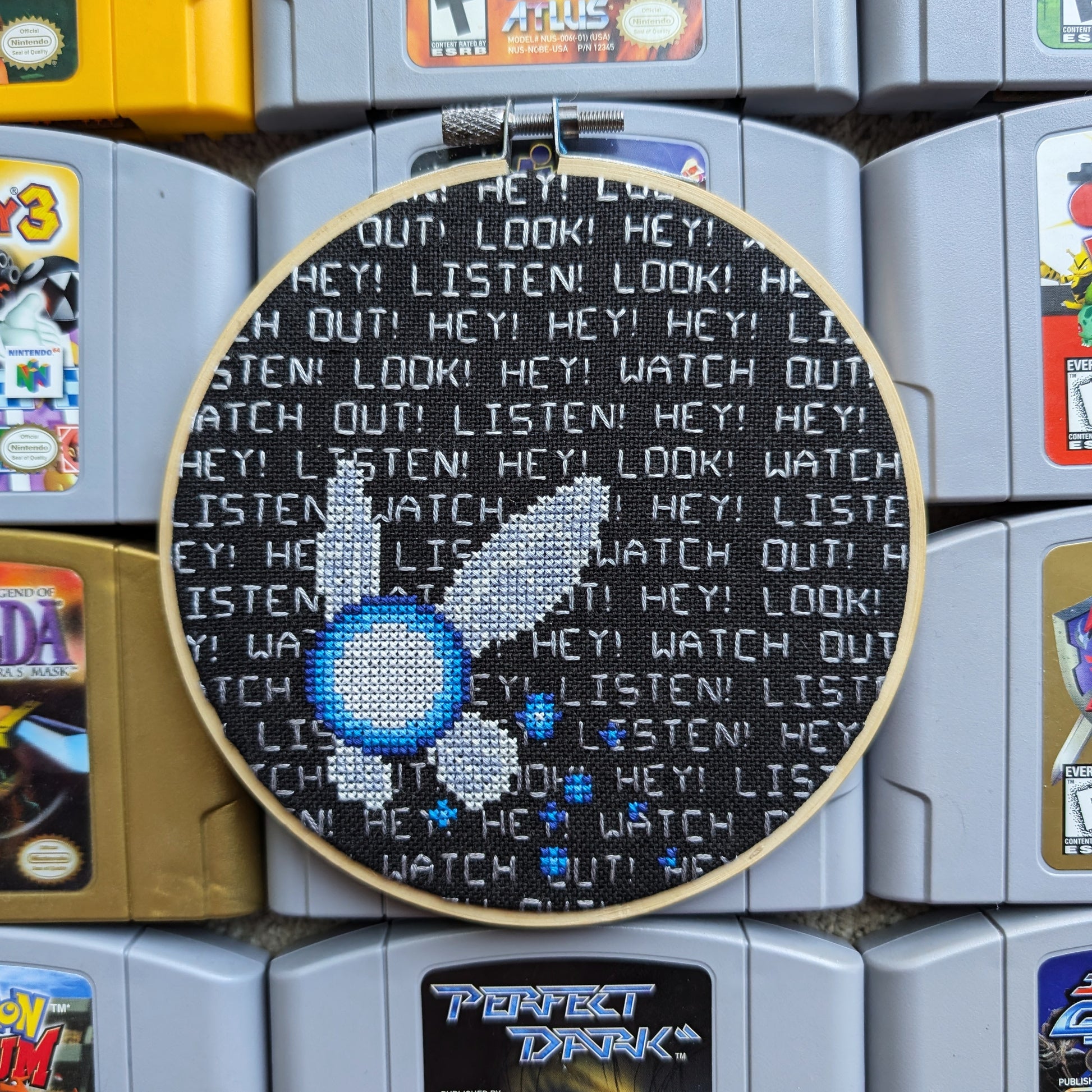 This cross stitch pattern is the perfect gift for the retro gamer who still suffers flashbacks from that annoying little fairy from a certain N64 game. It combines cross stitching and blackwork techniques for a striking design that's sure to delight and amuse the joystick jocky in your life!