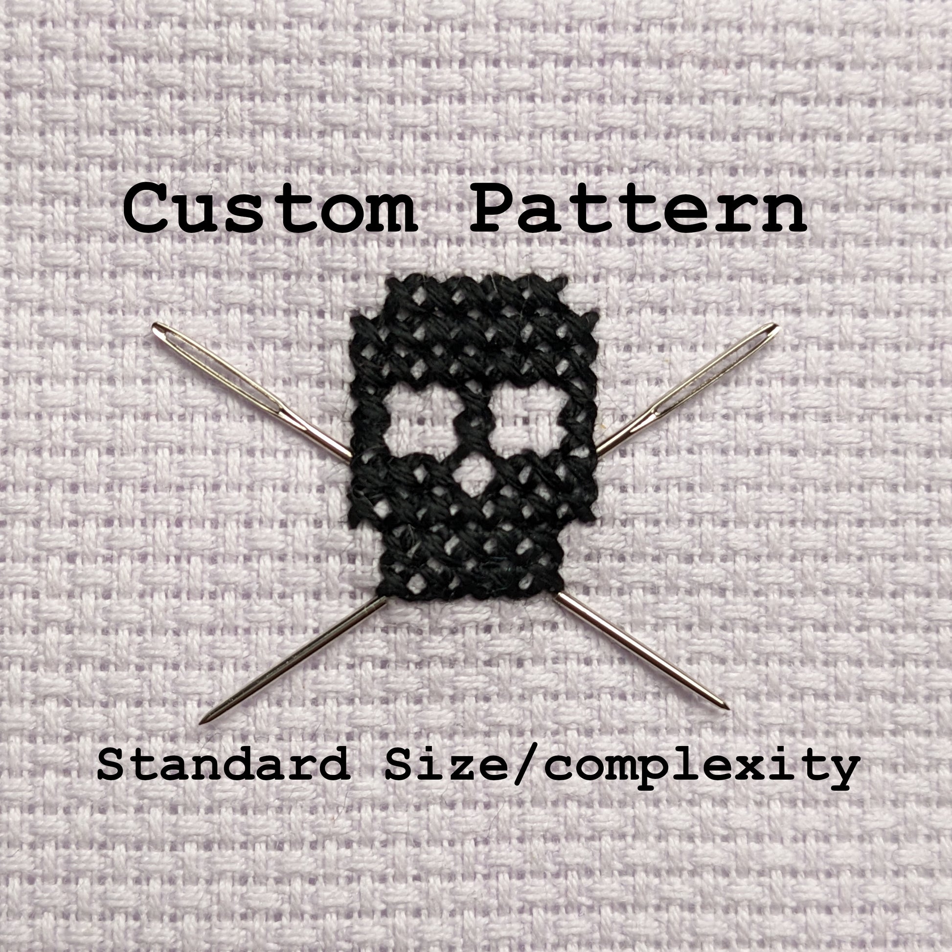 This listing is for a custom pattern by SonovaStitch in my typical range of size and complexity. Larger or more complex patterns may cost more. I can typically turn a custom order around within a week, but please check with me before ordering.