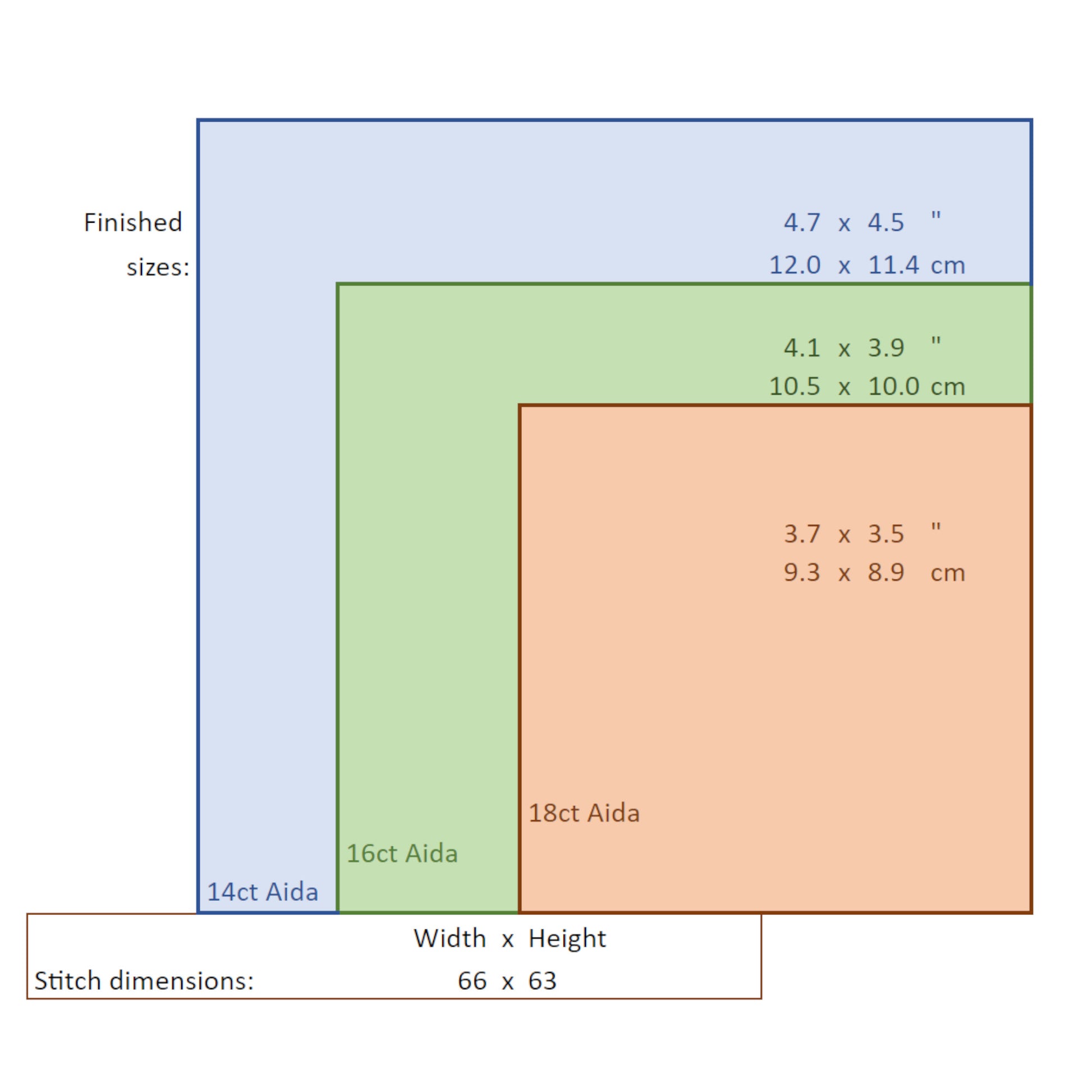 Size: 66x63 stitches (see images for sizing on different fabric counts)