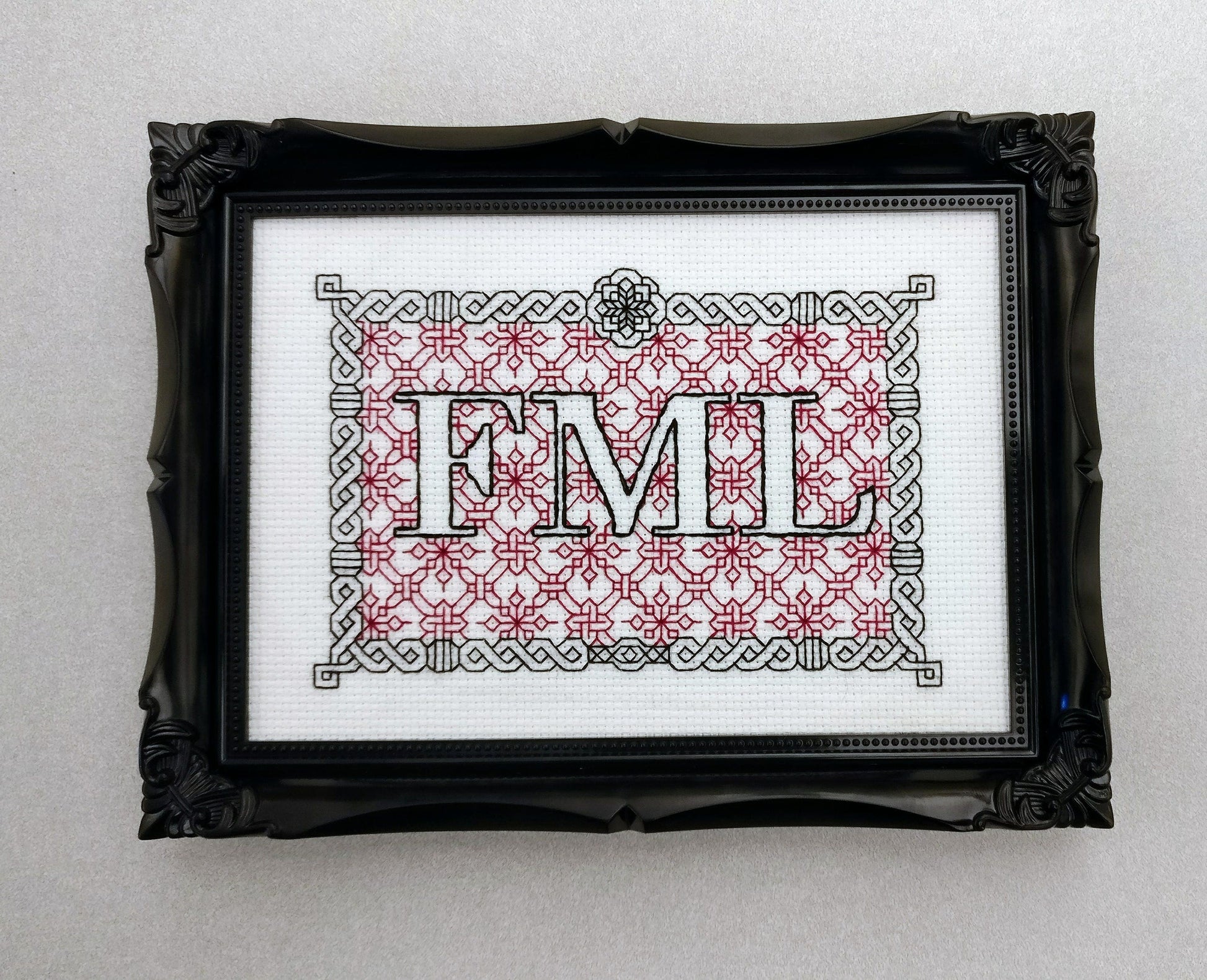 This cross stitch/blackwork pattern combines the ancient technique of blackwork embroidery with the modern language of the internet.