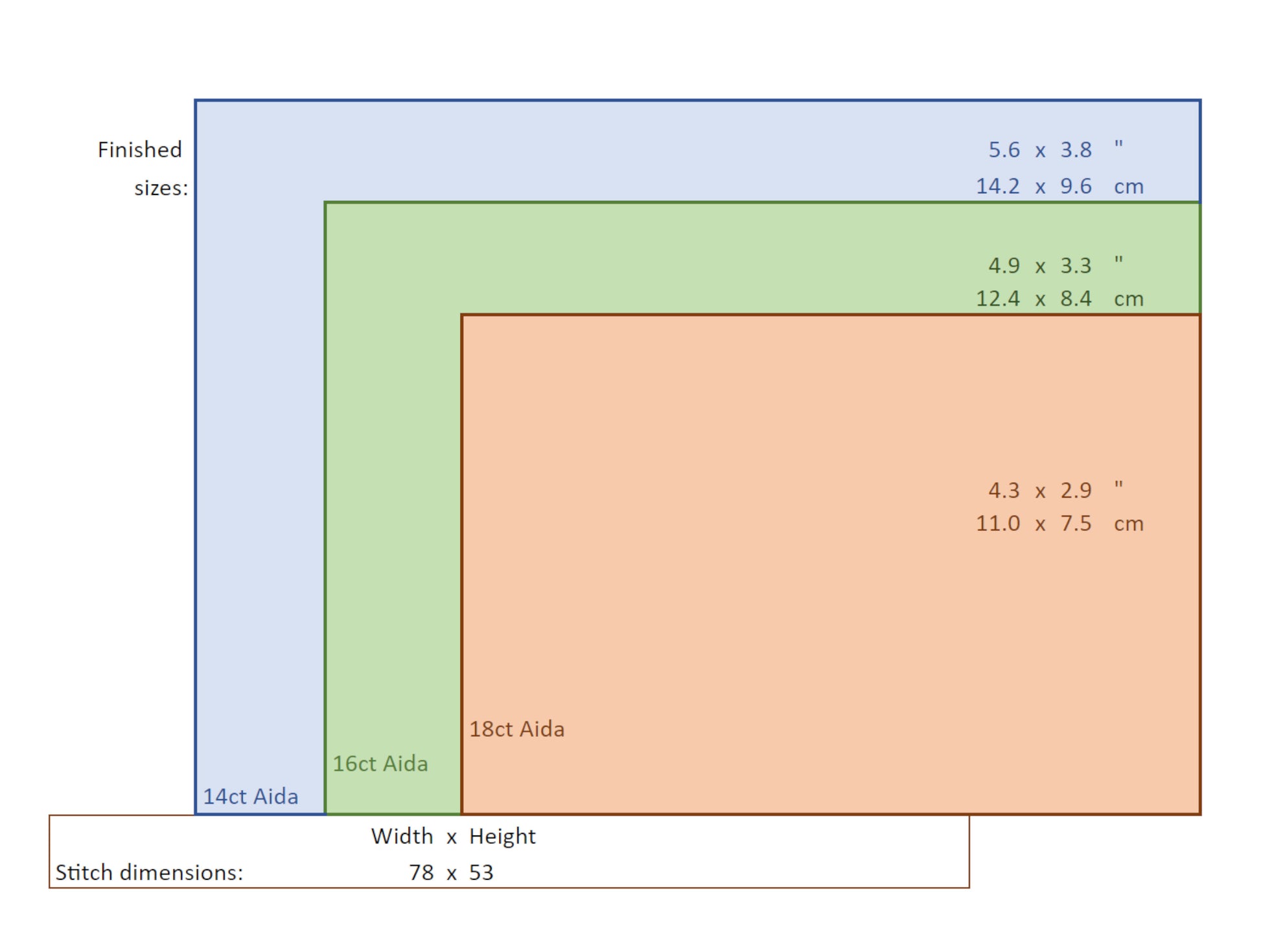 All stitches used are straight stitches or backstitching, but there are some fractional stitches required.