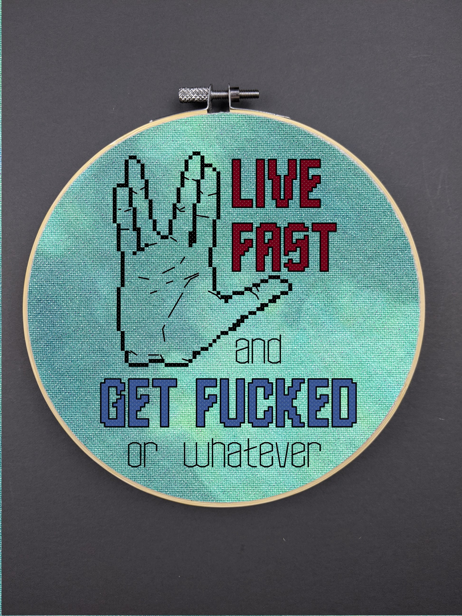Live Fast and Get Fucked or Whatever Star Trek fan cross stitch pattern