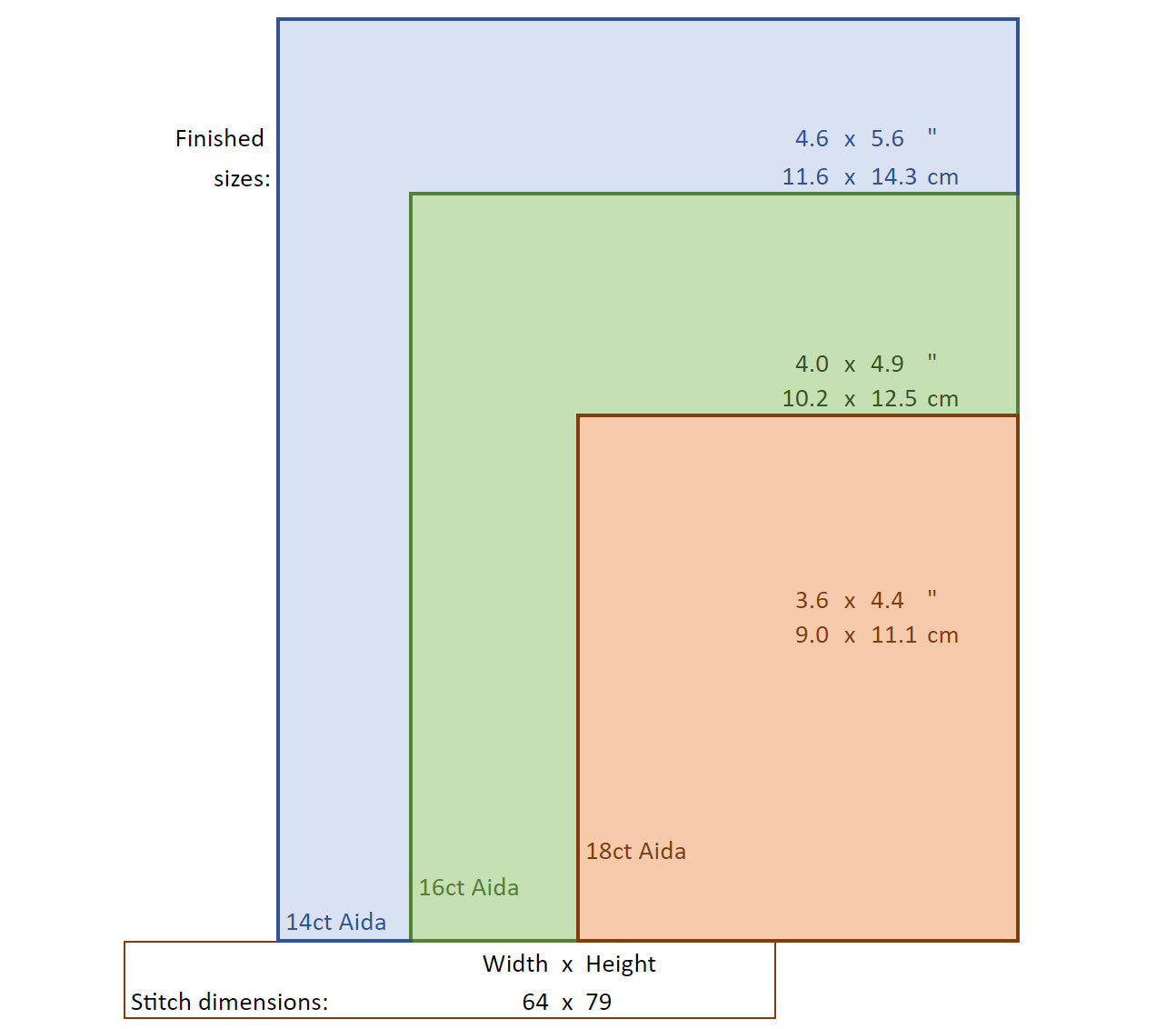 Size: 64x79 stitches (see images for sizing on different fabric counts)