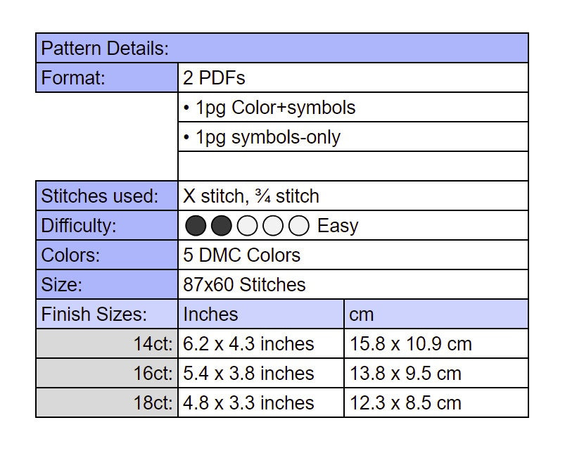 My mockup is shown on 14ct aida in a 5x7 frame.