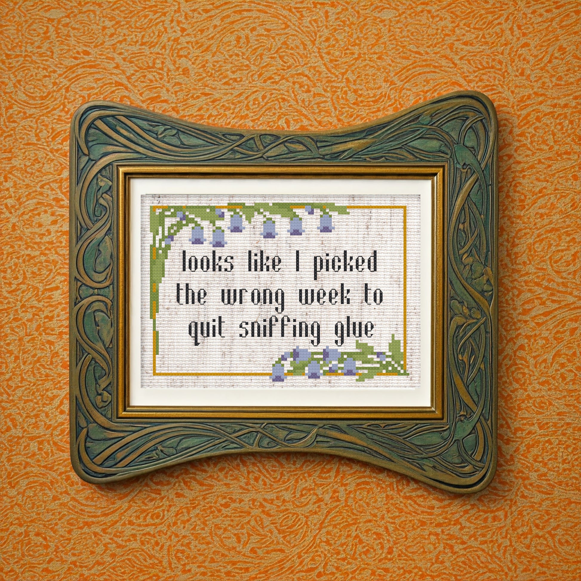 Looks like I picked the wrong week to quit sniffing glue Cross Stitch Pattern - instant PDF Download