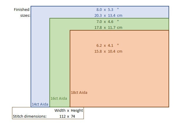 Size: 110x71 stitches (see images for sizing on different fabric counts)