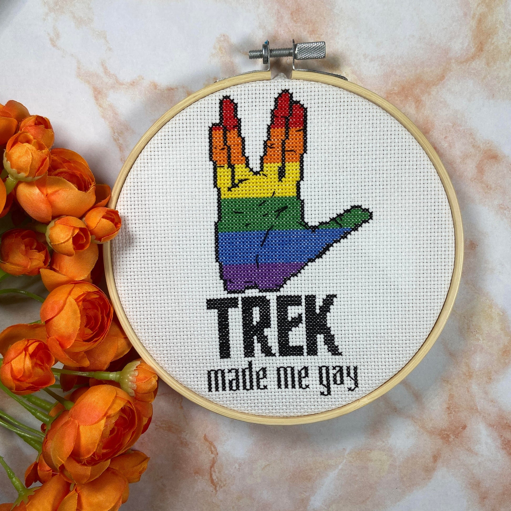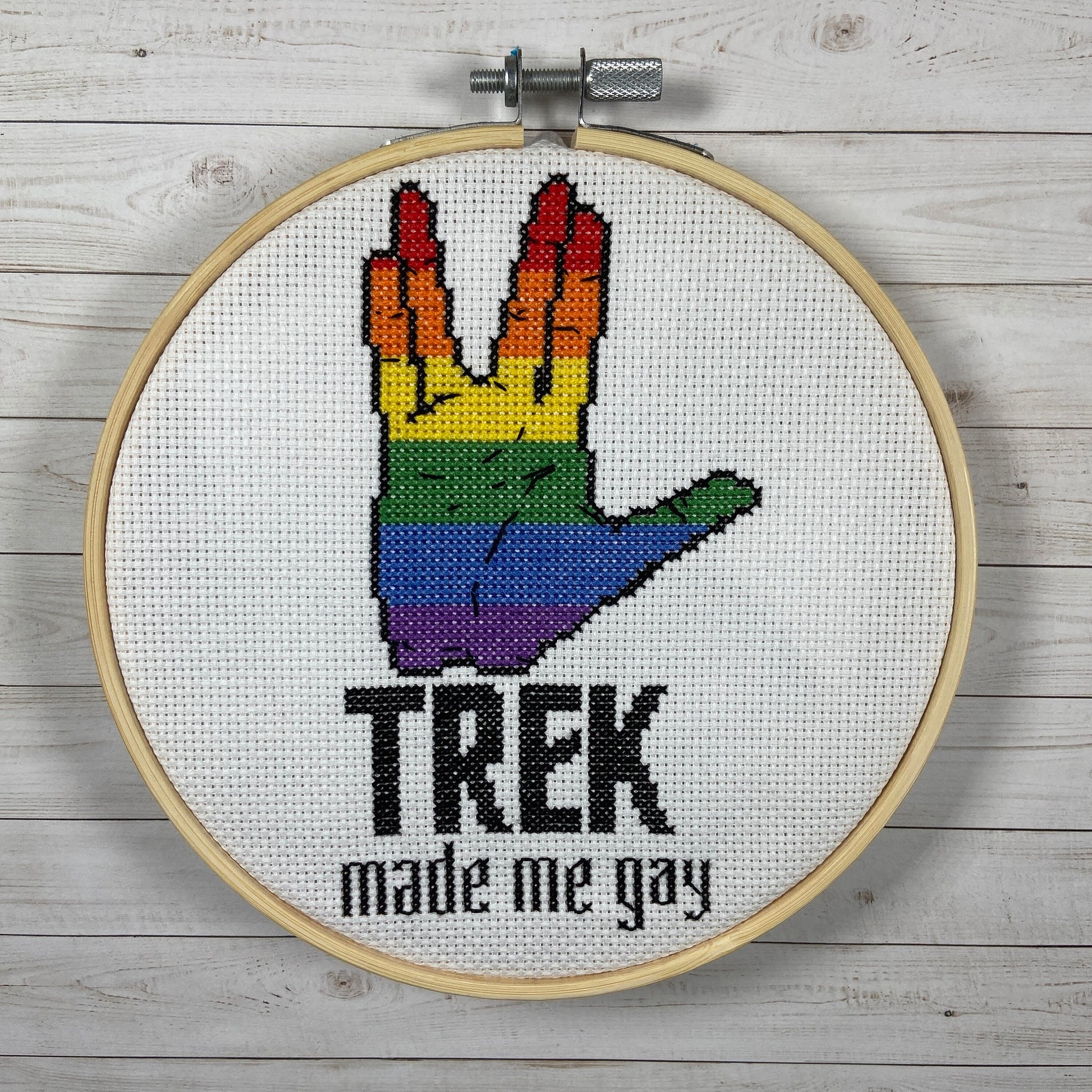Trek Made Me Gay: funny subversive queer cross stitch PDF pattern (Star Trek parody - instant download) Live Long and Prosper Vulcan Salute