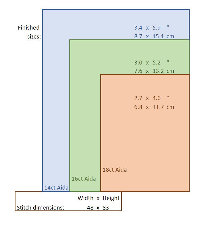 Size: 48x83 stitches (see images for sizing on different fabric counts)