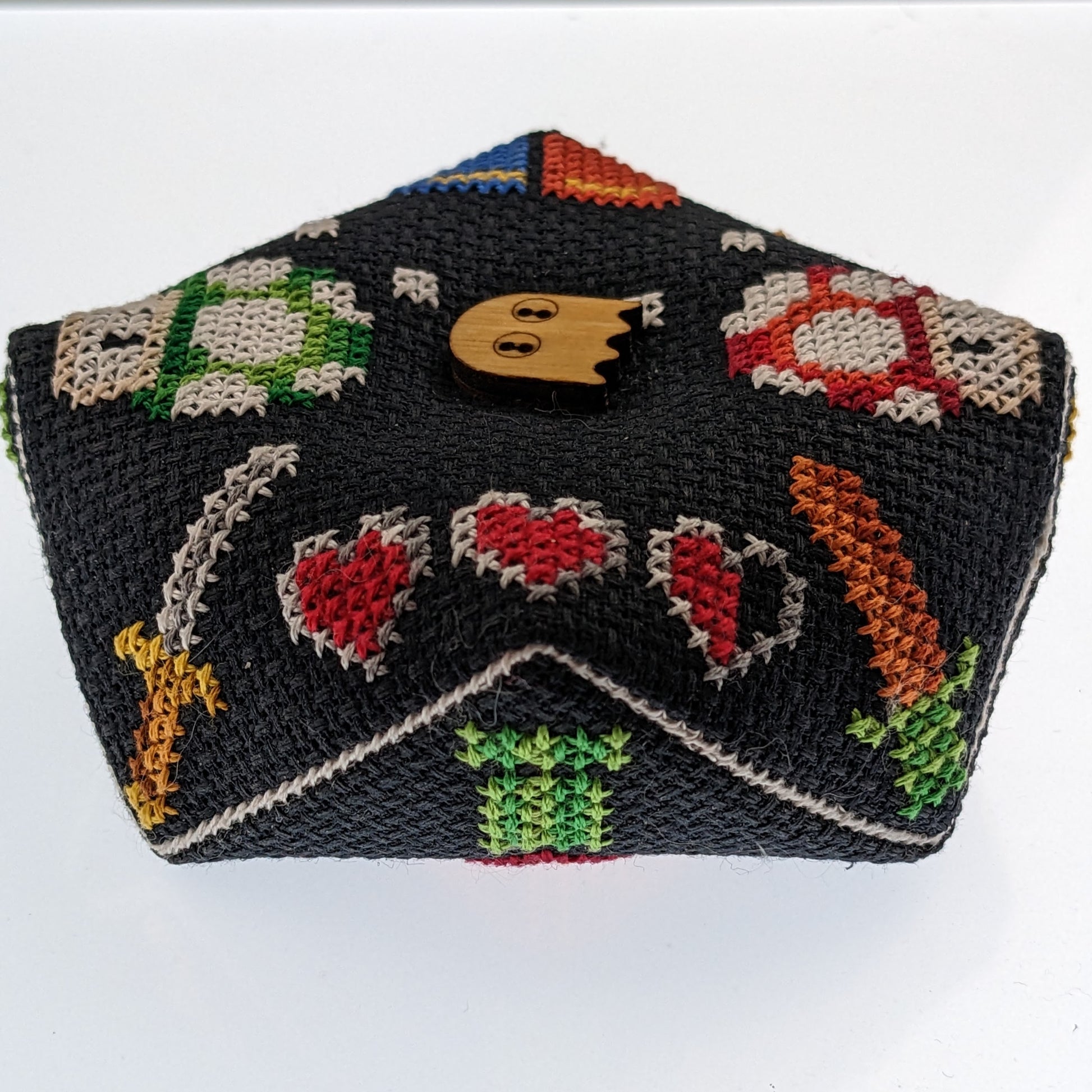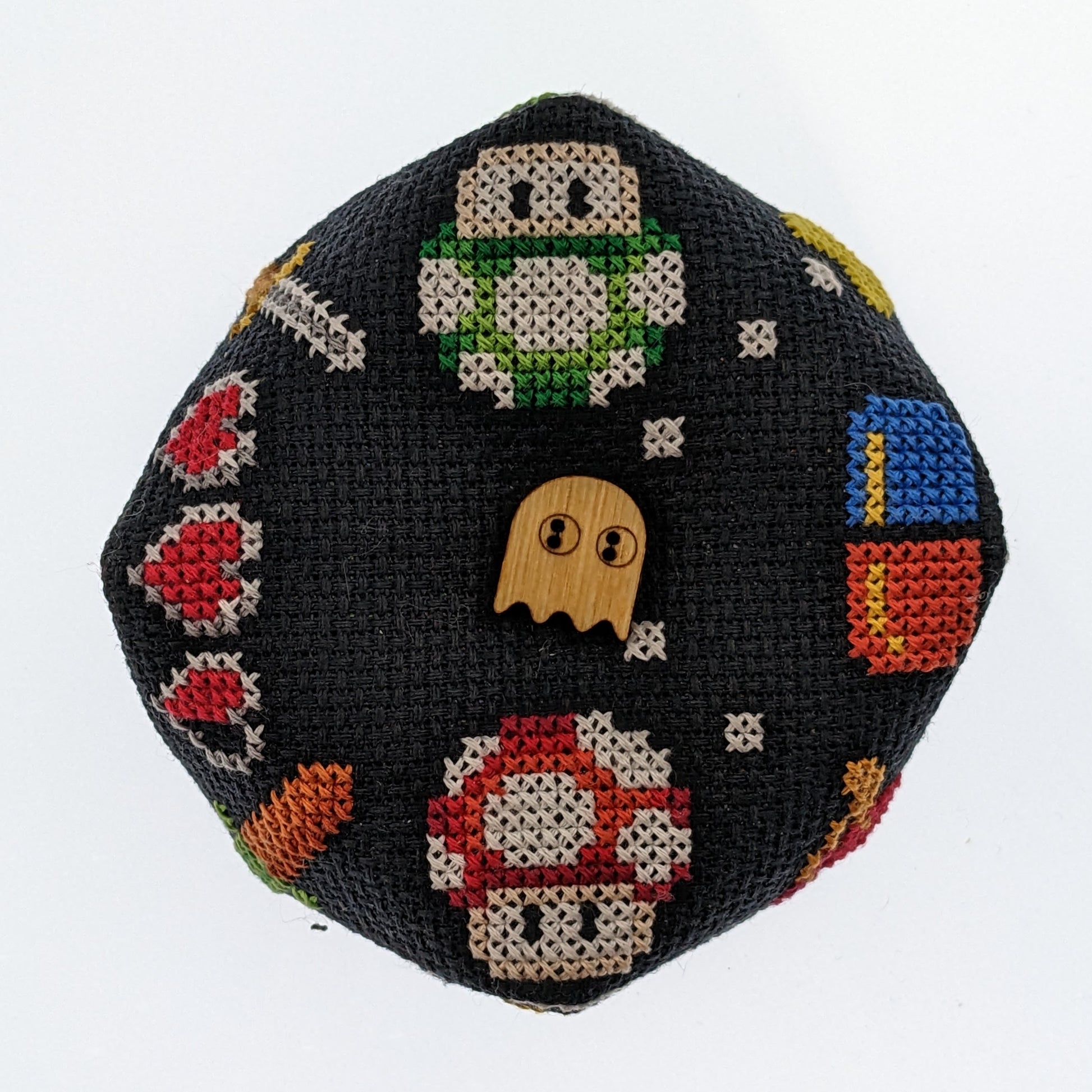 Introducing our latest cross-stitch pattern, the Biscornu decorated with 8-bit and retro video game images!