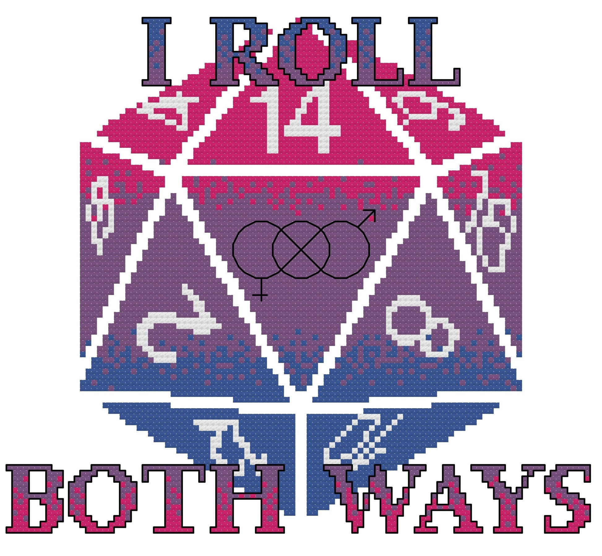 Bisexual pride flag D20 PDF cross stitch pattern: "Dicexuality"