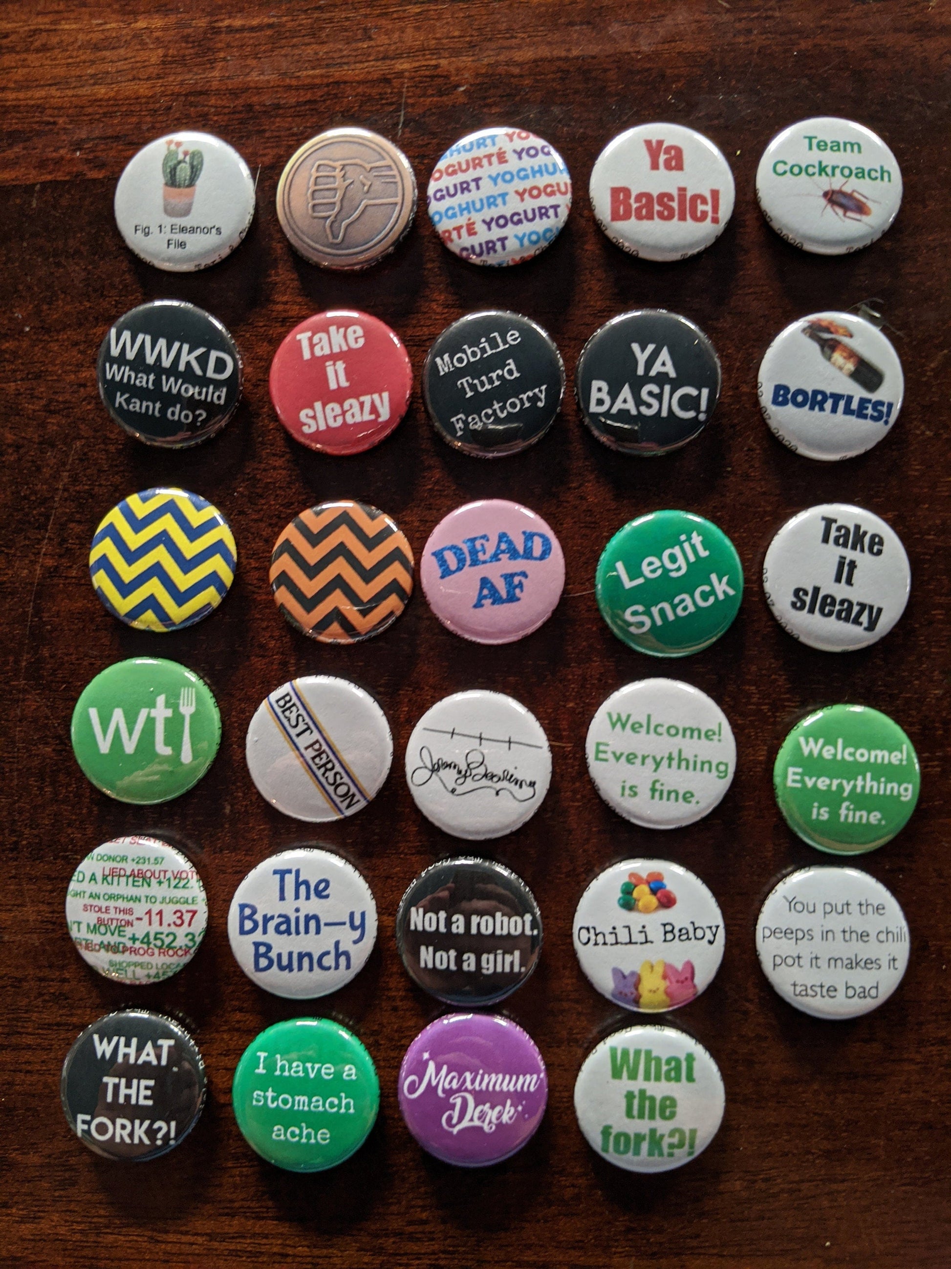 Cute 1" buttons for your conference, party, Burn camp, family reunion, or band merch table.