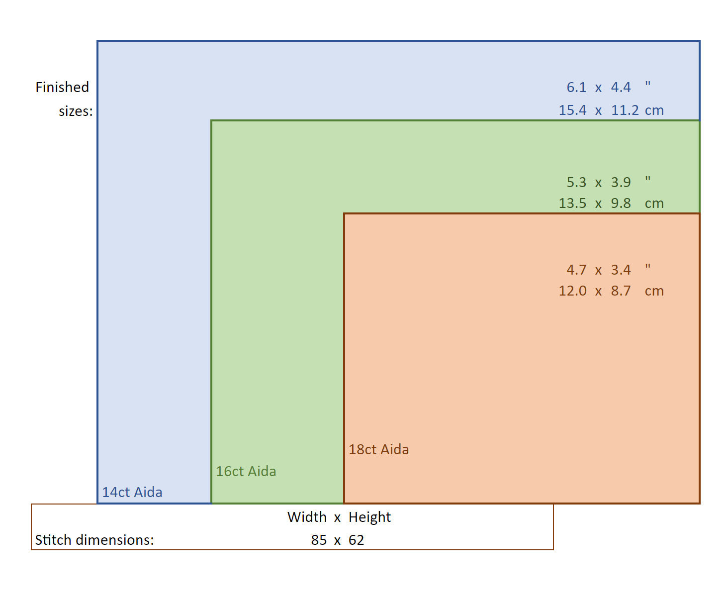 Size: 85x62 stitches (see images for sizing on different fabric counts)