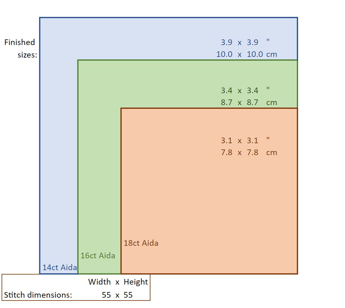 Size: 55x55 stitches (see images for sizes on various fabric counts)