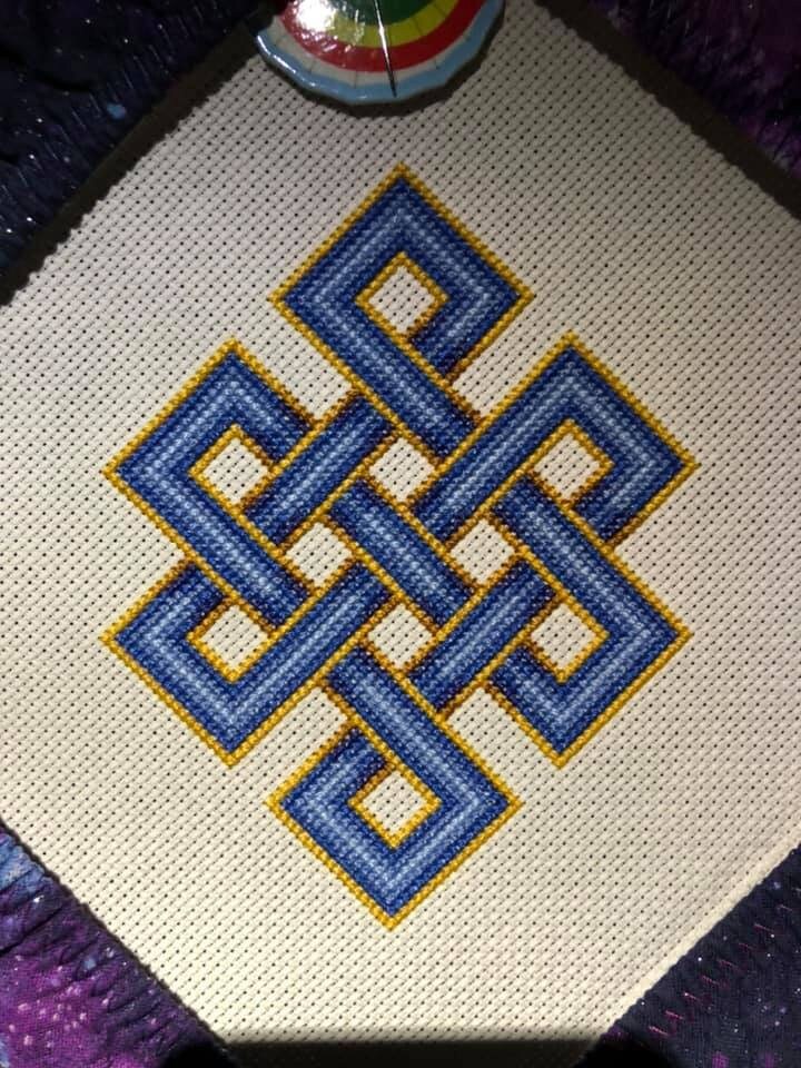 The knot symbolizes cycles, the cyclic nature of life and existence, the intertiwining of wisdom and compassion, duality, and balance.
