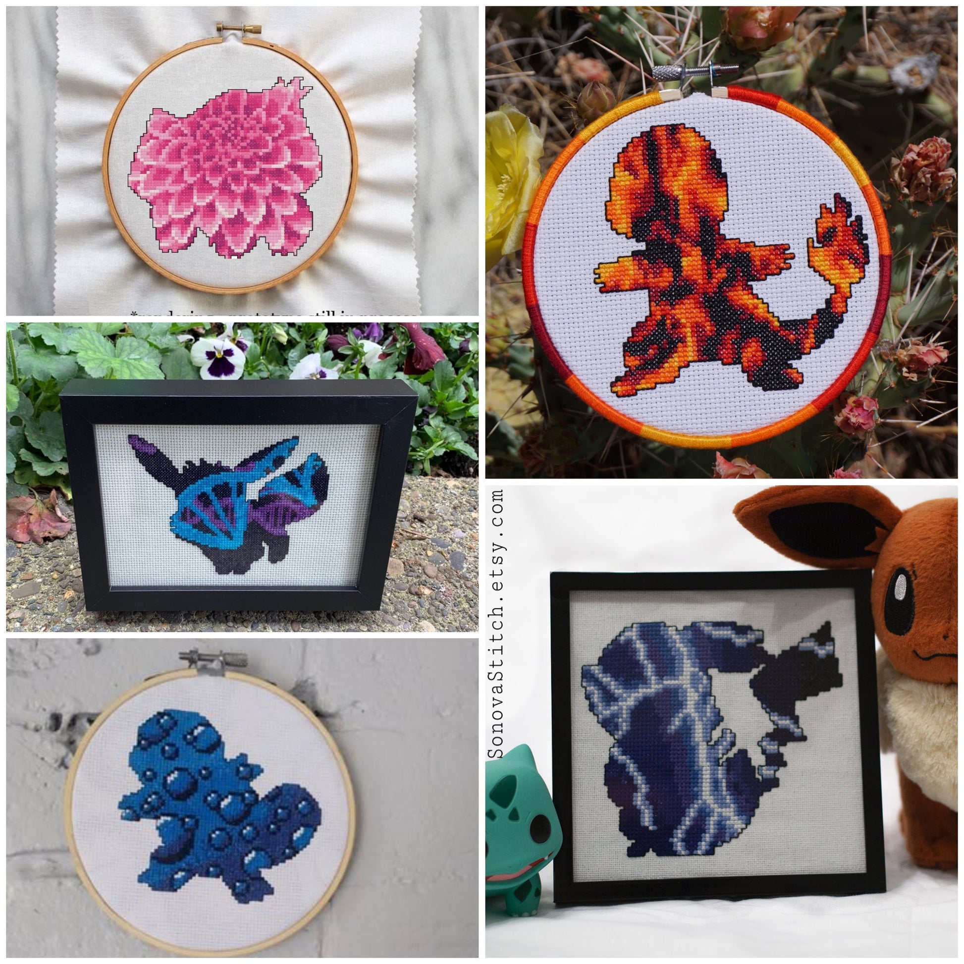 Elemental Pokemon All-stars Cross Stitch Patterns - instant PDF download