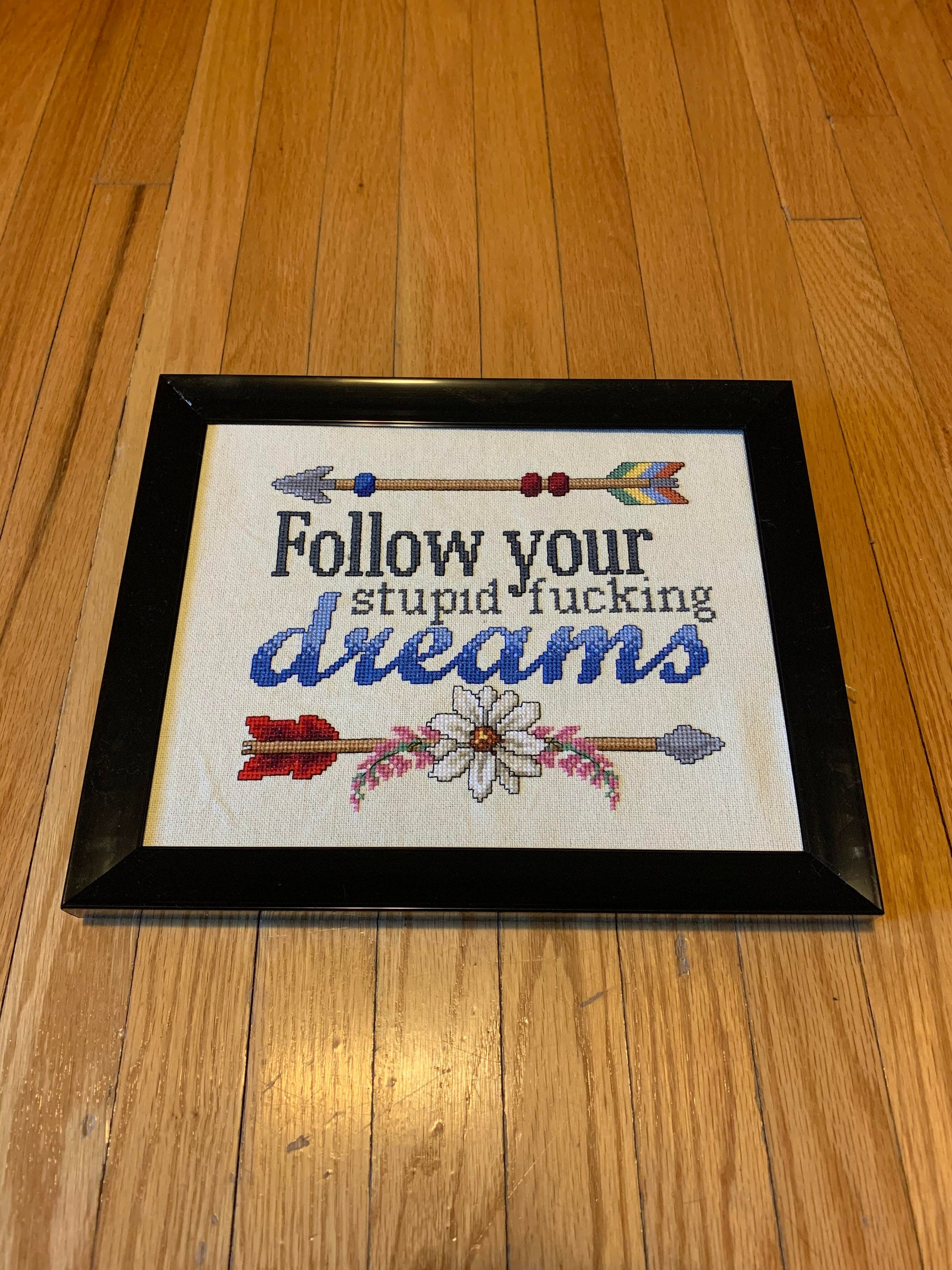 Subversive/inspirational cross stitch pattern - follow your stupid fucking dreams - PDF instant download