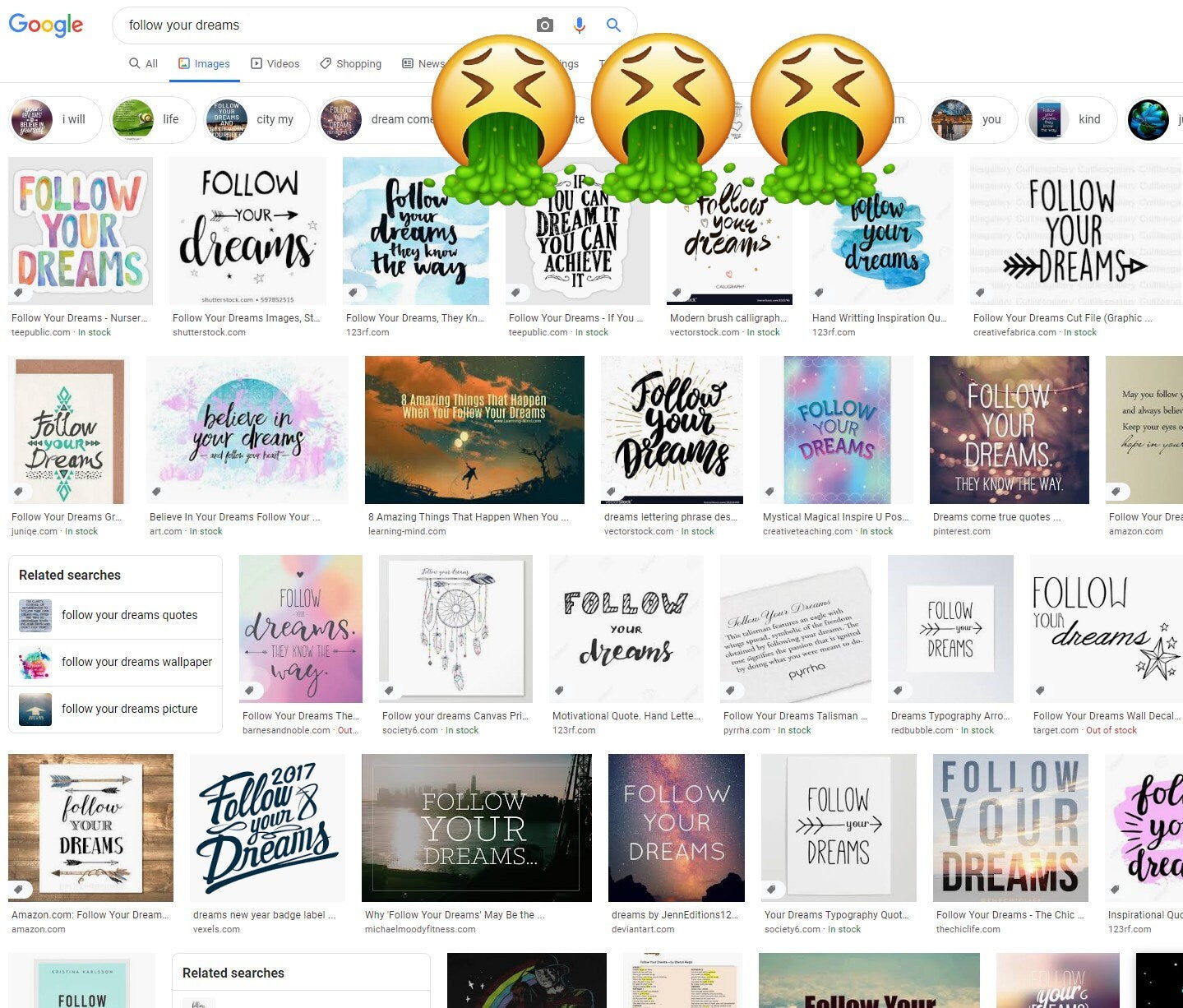 This pattern cuts through the bullshit and subtext and gets straight to the point: "Follow your stupid fucking dreams".