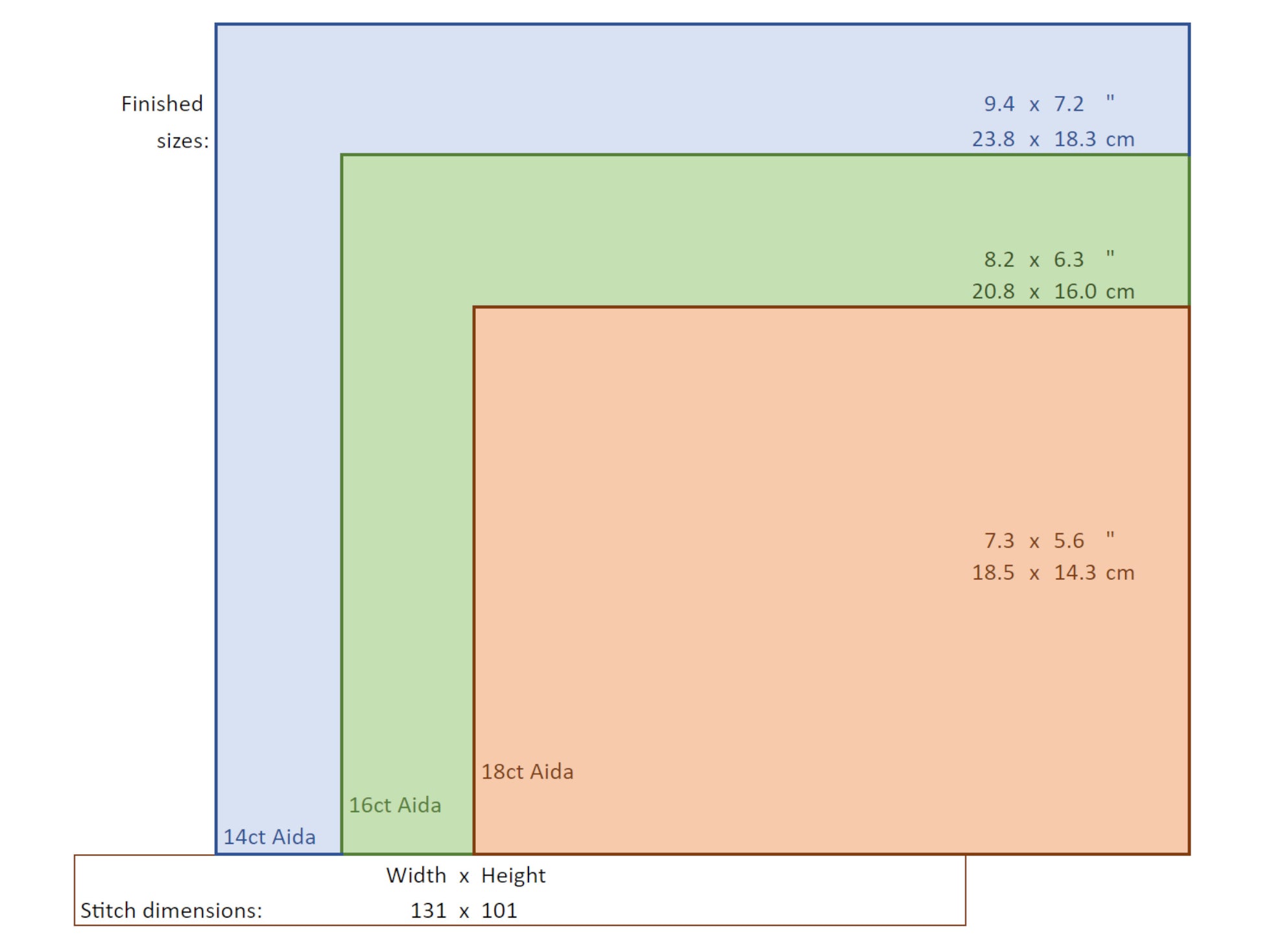 Size: 131x101 stitches (sized for 8x10 frame on 14ct aida)