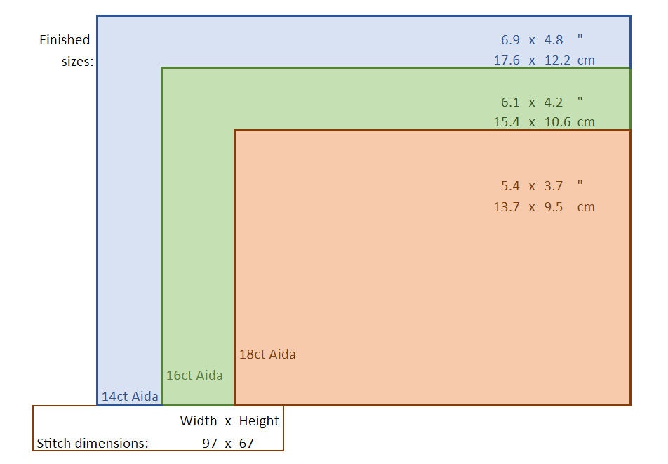Size: 96x67 stitches (see images for sizing on different fabric counts)