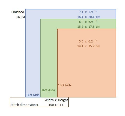 Size: 100x111 stitches (see images for sizing on different fabric counts)